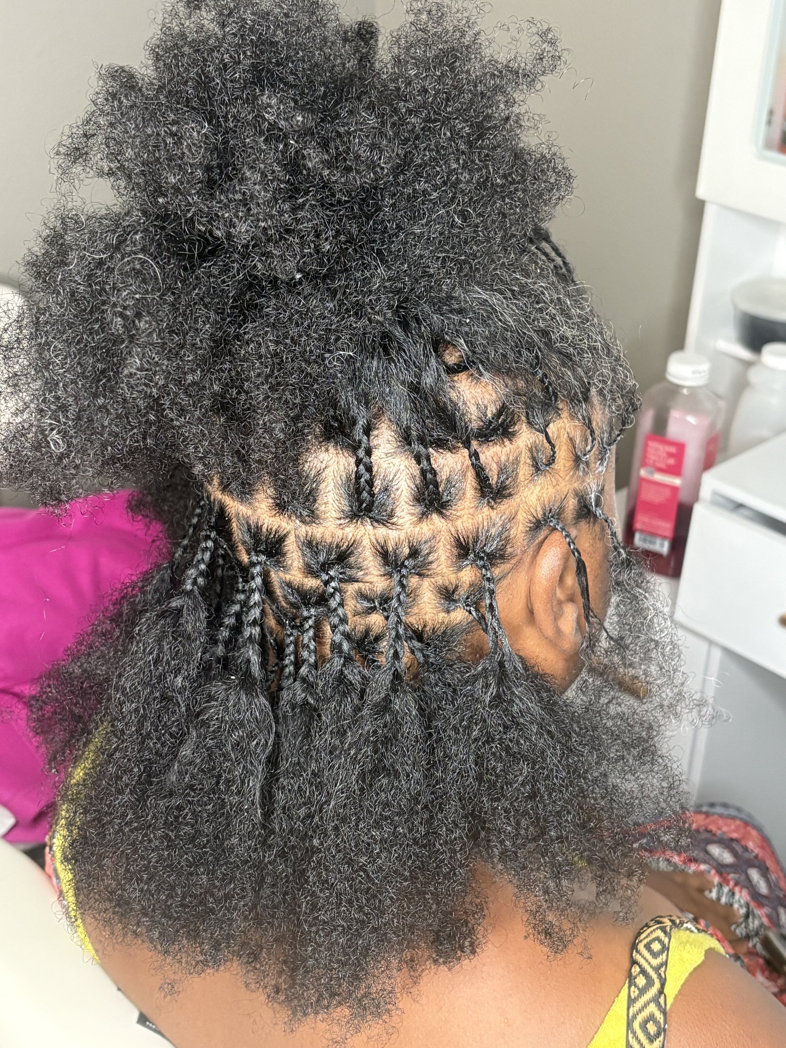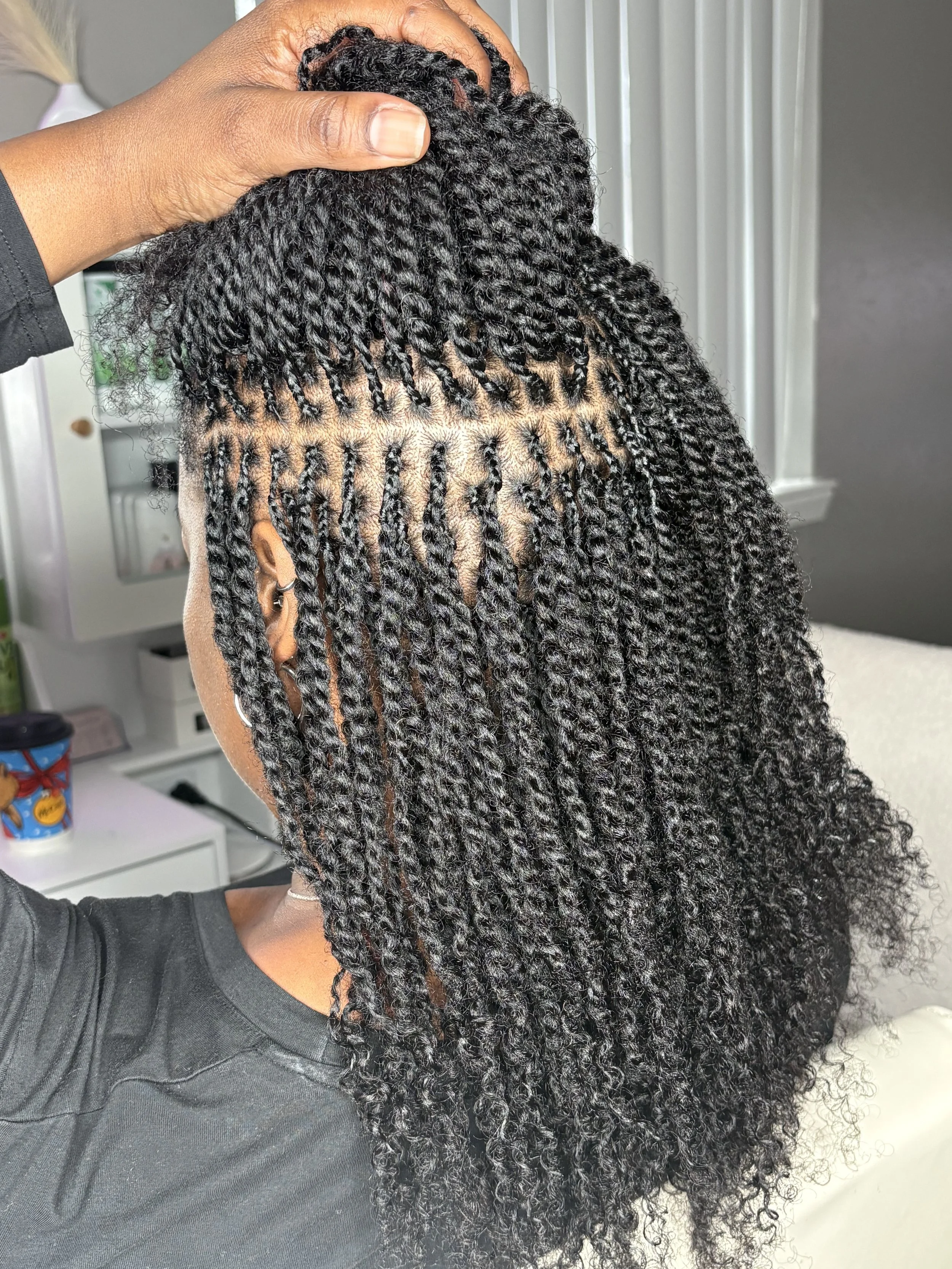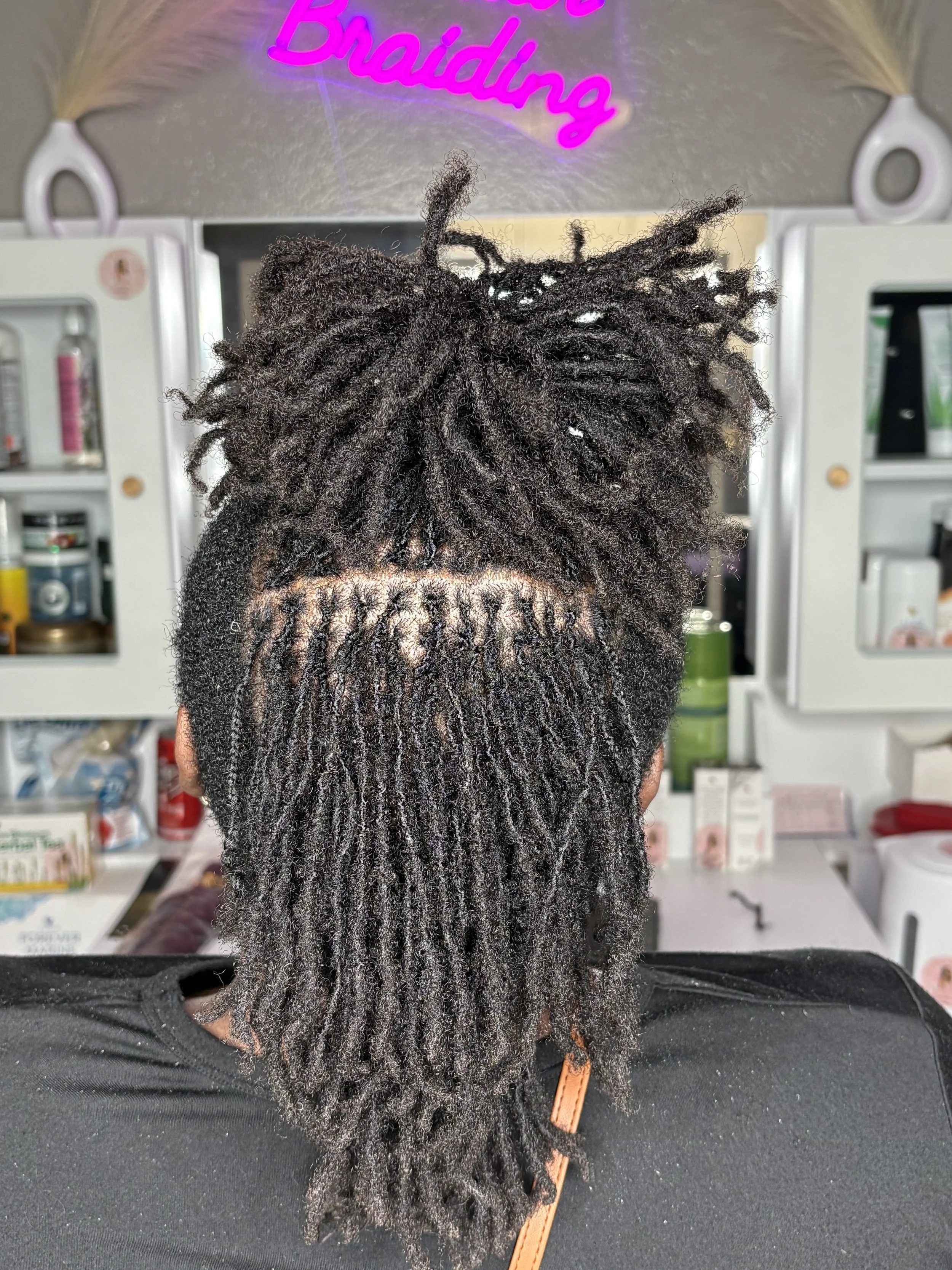 Every style is approached with intention, care, and attention to detail—whether it’s knotless braids, twists, starter locs, microlocs, or interlocking. My focus is not only on beauty, but on long-term hair health and client satisfaction.